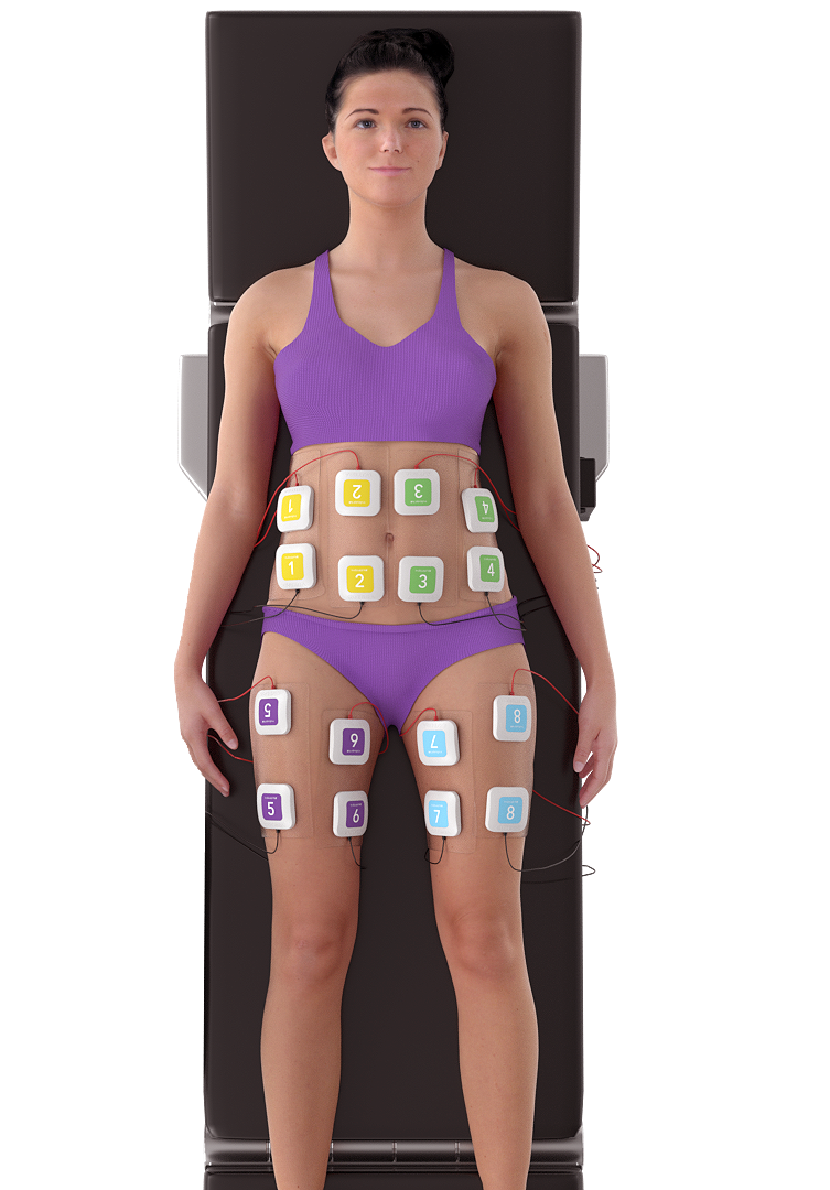 TruFlex® enhances muscle tone, delivering the equivalent of 54,000 crunches in just 15 minutes. This treatment features three specialized modes that simulate five different workout routines to strengthen and tone muscle groups such as the abdomen, obliques, thighs and glutes.